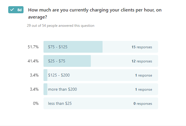 What this bird’s eye view doesn’t convey directly: Among our students who responded to both questions, nearly three quarters of them have increased their rates after going through our CHEK Academy programs.